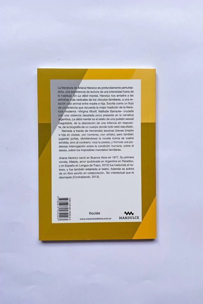Escrita como un flujo de conciencia que recuerda a la mejor literatura moderna -Virgina Woolf, Nathalie Sarraute- cruzada con una violencia desatada poco frecuente en la narrativa argentina, La débil mental es el relato de una relación casi animal entre madre e hija, de una pulsión sexual inagotable, de la biografía de un cuerpo donde todo está sepultado. Narrada a través de tremendas escenas breves (madre e hija en clubes, con hombres, con whisky; pero también jugando juntas, divirtiéndose) la novela nunca se vuelve sórdida, sino al contrario: roza la poesía, y formula una poderosa interrogación sobre la condición humana, sobre el deseo, sobre los imposibles mandatos familiares.
