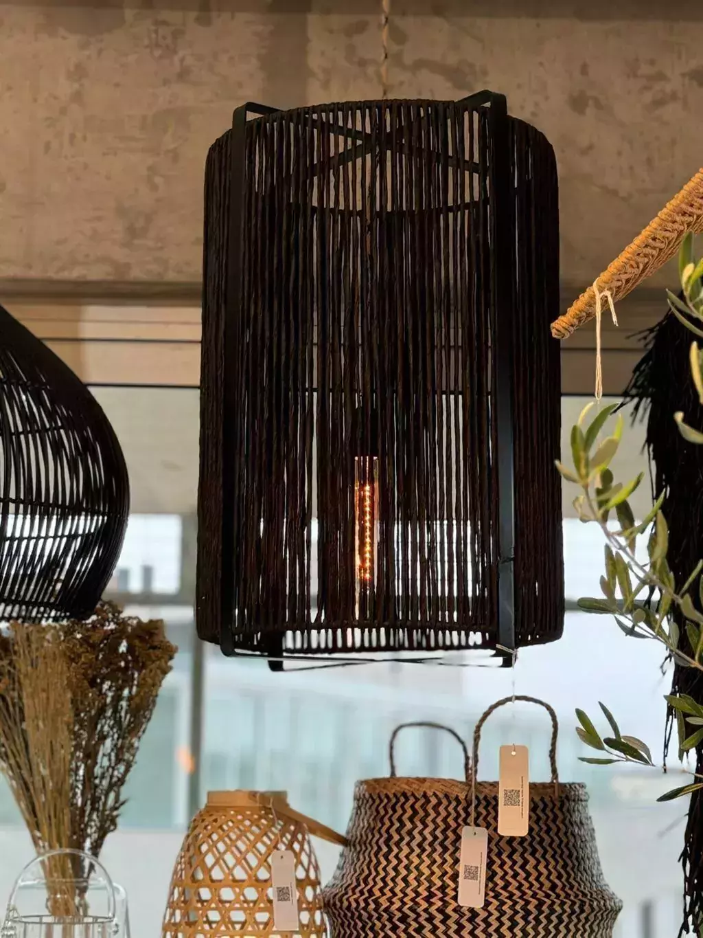 Confeccionado con fibras naturales, hilo Kraft encordado artesanalmente. Armazon de hierro y panchuela de 1/2 Este producto puede tener una demora de entrega de entre 7 a 10 días, consultanos disponibilidad. Medidas: 40cm diámetro x 58cm alto