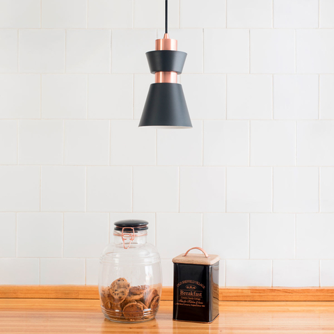 Lámpara colgante de 15cm de diámetro ideal para agrupar sobre una mesada o como mesita de luz colgante- Material: copa de hierro torneado con detalles diferente terminaciones y cable téxtil- Diámetro: 15cm- Alto de Lámpara: 23cm- Largo de cable: 120cm- Portalámpara : E27- Alimentación: 220v
