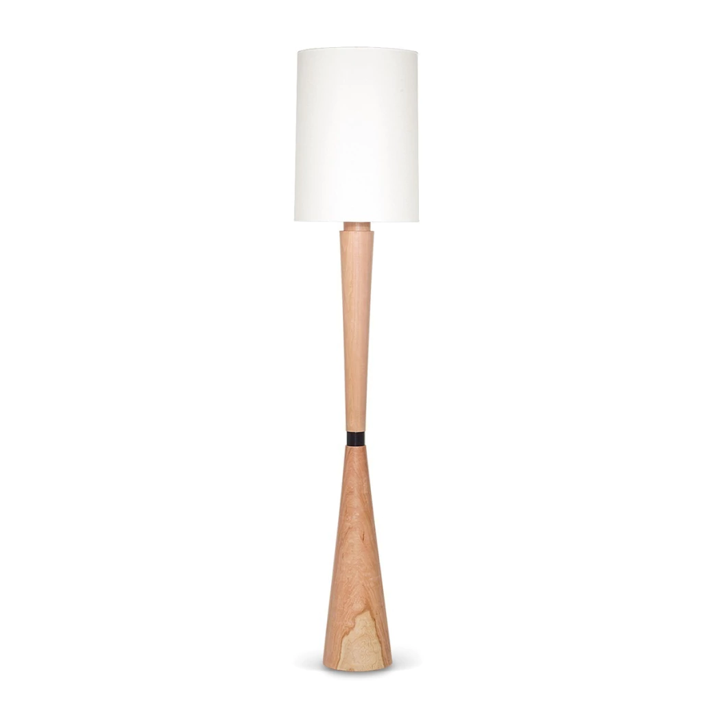 LAMPARA DE PIE EN MADERA DE LENGA MATE, CON PANTALLA DE LINO.