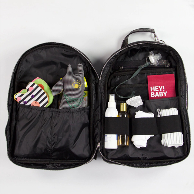 LAS FLORITAS MOCHILA MATERNAL HELENA NEGROMochila Maternal apertura lateral-Full eco cuero-Interior impermeable-Bolsillos térmicos para dos mamaderas-Divisiones internas-Bolsillo interno con cierre-Gancho porta chupete-Tira con broche para colgar del cochecito-Herrajes metálicos-Cambiador impermeable de 50 cm x 30 cm.Medidas del producto:30 cm largo x 43 cm alto x 15 cm base