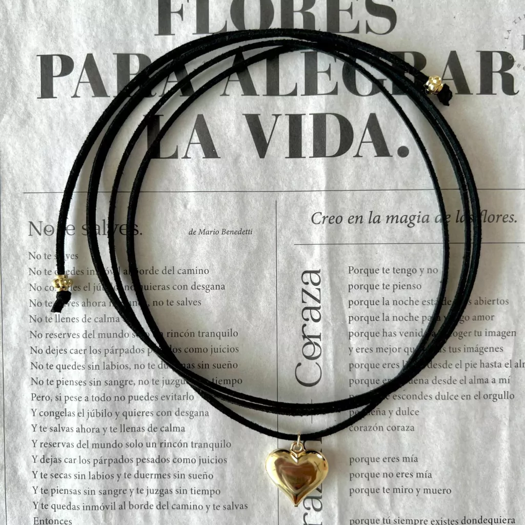 Lazo de gamuza con dije y terminales bañados en oro 18k
