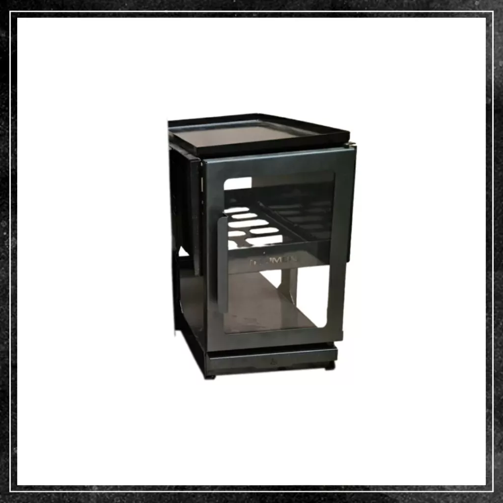 Ancho 30cm. Profundidad 55cm. Alto 47cm. Cuerpo enlozado Puerta de vidrio con pintura de alta temperatura, Cajon calentador Parrilla superior enlozada Desmontable Bandeja plancheta superior enlozada