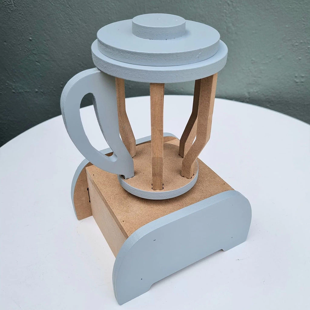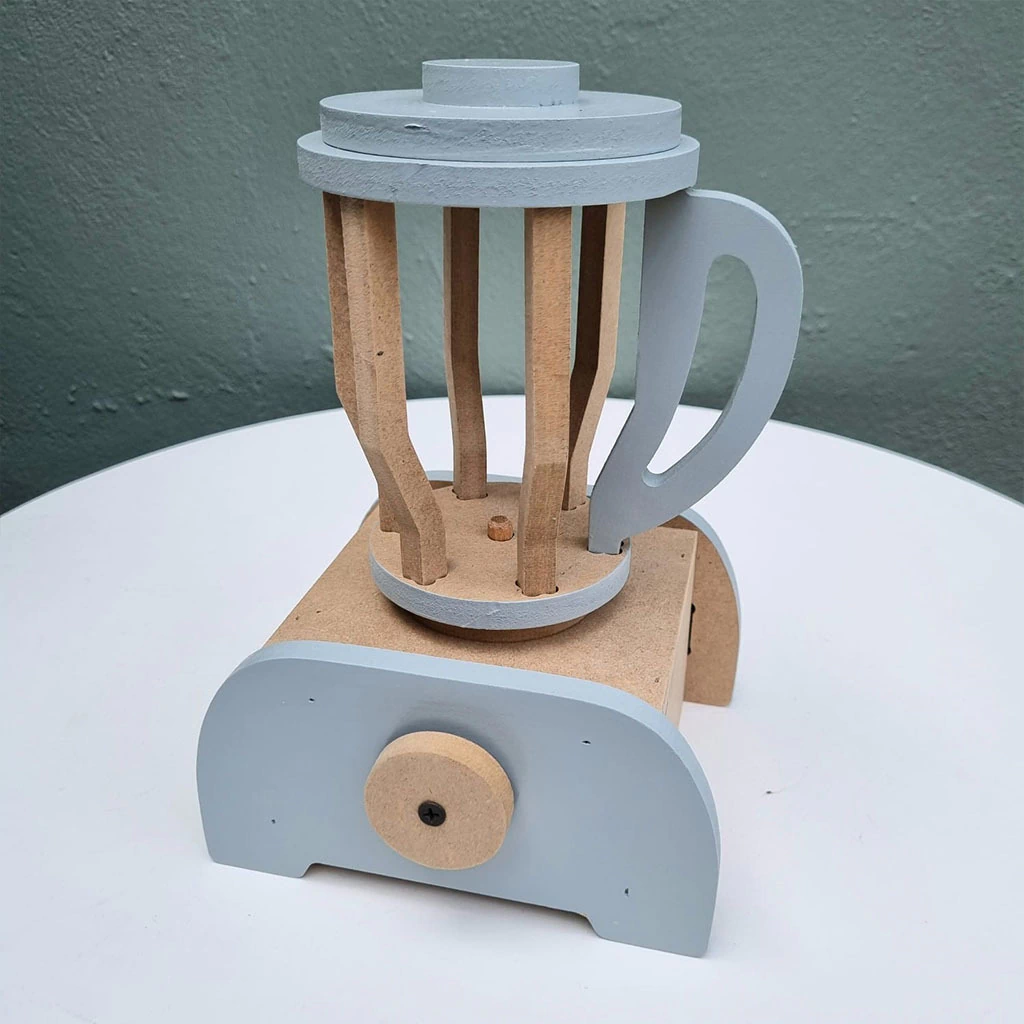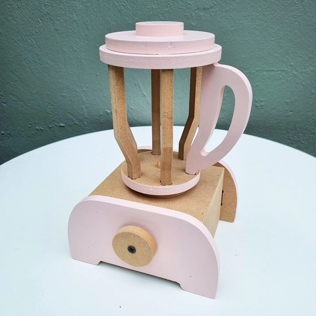 Licuadora 100% madera pintada a mano. Se le saca el vaso.Mide 23 x 16 x 13 cm