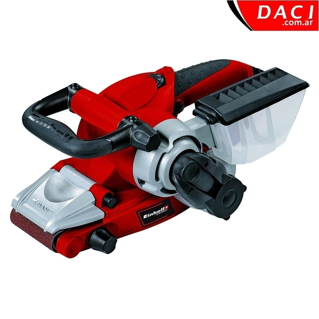Lijadora de banda a batería TE-BS 8540 850w LIJA 75X533 - Einhell - #daci.com.arDescripción del productoCon la lijadora de banda RT-BS 75 los expertos adquieren una potente herramienta de gran calidad que proporciona los mejores resultados en muchos trabajos de lijado incluso que requieran un gran rebaje. La electrónica de regulación del número de revoluciones permite la exacta adaptación de sus prestaciones a los materiales y la tarea en cuestión. El rodamiento de la banda de extraordinaria precisión queda garantizado por el óptimo ajuste. Las bandas de lija se pueden cambiar con gran rapidez sin necesidad de herramientas. Su empuñadura antideslizante y el mango auxiliar regulable de la RT-BS 75 ofrecen una excelente ergonomía y un gran confort de uso. La cubierta frontal se levanta para introducir la herramienta en huecos de difícil acceso. Cuando se mantiene baja, la cubierta sirve como separador para mantener la distancia en la parte frontal. En combinación con el mango auxiliar regulable, esta lijadora proporciona la mayor flexibilidad. Para facilitar un trabajo limpio, la lijadora de banda está equipada con un adaptador para un sistema de aspiración, así como con un depósito para recoger el polvo. Una vez realizado el trabajo, un clip permite fijar el cable enrollado y guardar la RT-BS 75 de forma ordenada y rápida. Con la herramienta se incluye una banda de lija para poder empezar a trabajar de inmediato con ellaDatos técnicosSuministro de red 230 V | 50 HzPotencia 850 WRalentí 300 m/min - 400 m/minCinta de lijado 75 mm x 533 mmÁrea de lijado 75x140 mmDatos logisticosLongitud 414 mmAncho 175 mmAltura 176 mmPeso bruto embalaje individual 3.75 kgPeso del producto 3.1 kg