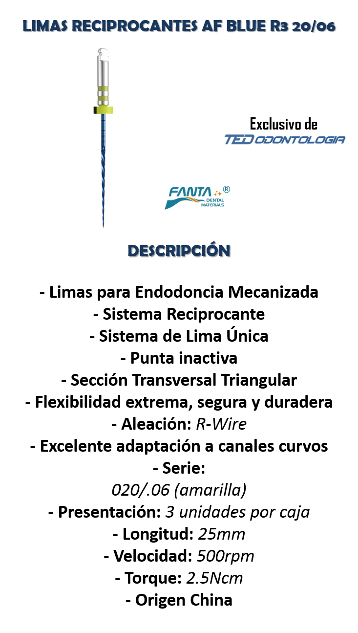Limas Reciprocantes AF Blue R3 20/06 25mm x 3u Fanta