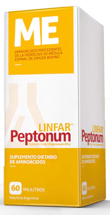 Revitalizante neuronal.PRESENTACIÓNGotas por 60 mlMODO DE ADMINISTRACIÓN45 a 75 gotas diarias en 10 a 15 ml de aguaPEPTONUM LINFARPeptonum Linfar es una línea de suplementos nutricionales a base de peptonas, complejos de aminoácidos biológicos de bajo peso molecular. Al ser un producto íntegramente biológico no genera efectos secundarios, intolerancia ni contraindicaciones.En su composición NO CONTIENE proteínas enteras, azúcares, grasas, drogas ni hormonas. Tampoco forman parte de su composición el trigo, la cebada, el centeno ni otras fibras. Al ser una fórmula orgánica, NO POSEE colorantes, ni saborizantes, ni aromatizantes.Por todo lo anterior Peptonum Linfar es un producto muy seguro que no ocasiona alteraciones hepáticas, ni renales. No genera adicción ni posee antagonismos o sobredosis. Dentro de la línea existen más de cuarenta fórmulas que hacen referencia a diferentes órganos.