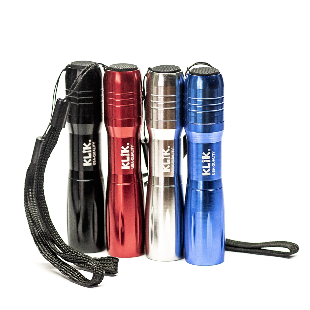 LINTERNA DE MANO  Material: Aluminio.  En varios colores.  Led.  Funciona con 1 pila AA (no incluidas).COLORES VARIOS