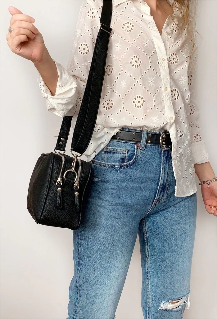 Tiene dos compartimentos separados donde podes llenarlo de cosas. Es comoda para todos los dias y muy canchera si queres ir a tomar algo.