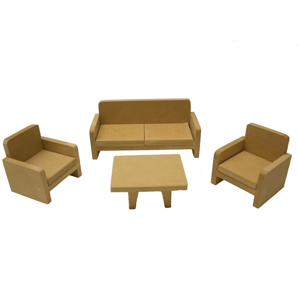 Juego de living para casa de muñecas en mdf fibrofacil.Listo para ser pintada y disfrutada!MEDIDAS:-2 Sillones chicos: 8,5 cm. x 8 cm. x 9 cm.-Sillón grande: 20 cm. x 8 cm. x 9 cm.-Una mesita de 11 cm. x 9 cm. x 5 cm.Todos en 9 mm. de espesor.En otras publicaciones contamos con más muebles y electrodomésticos para completar la casita.El precio es por unidad.Los productos se entregan sin pintar para que cada uno pueda diseñarlos y darle su propio estilo.Podes seleccionar envíos por correo argentino, correo Oca, contamos con envío propio y envío a través de encomiendas. Trabajamos con vía cargo, bus pack y md carga. Despachamos a la terminal más próxima a tu ubicación, el envío se abona al retirar.Tambien ofrecemos retiro en persona por nuestro local.