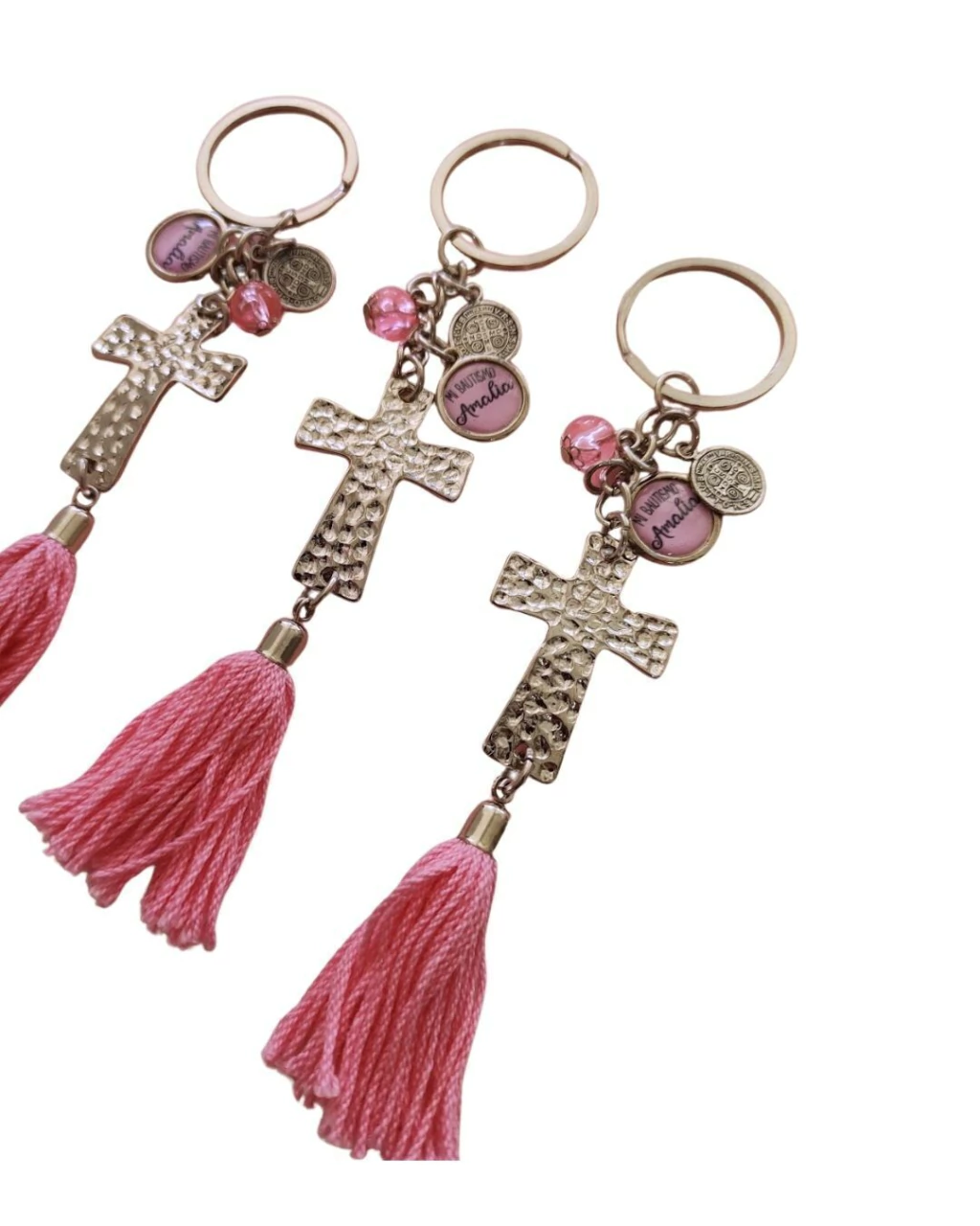 COMPRA MINIMA 10 UNIDADES IGUALESLLAVERO:Dije 15 mm simple personalizado. 3 LINEAS MAXIMO.Dije de metal chico no es a elección del cliente, se colocan surtidos siempre combinando con la temática o evento (por ejemplo si tu temática es religiosa van a ir dijes religiosos)Borla, la elección está en la última foto de la publicación y podés elegir siempre cada 10 unidades iguales. Nosotros nos encargamos de combinarla con la pelotita.En caso de que alguno de los dijes lo quieras doble, tiene costo extra (consultar)En caso de que quieras que cada llavero tenga un nombre diferente, tiene costo extra (consultar)