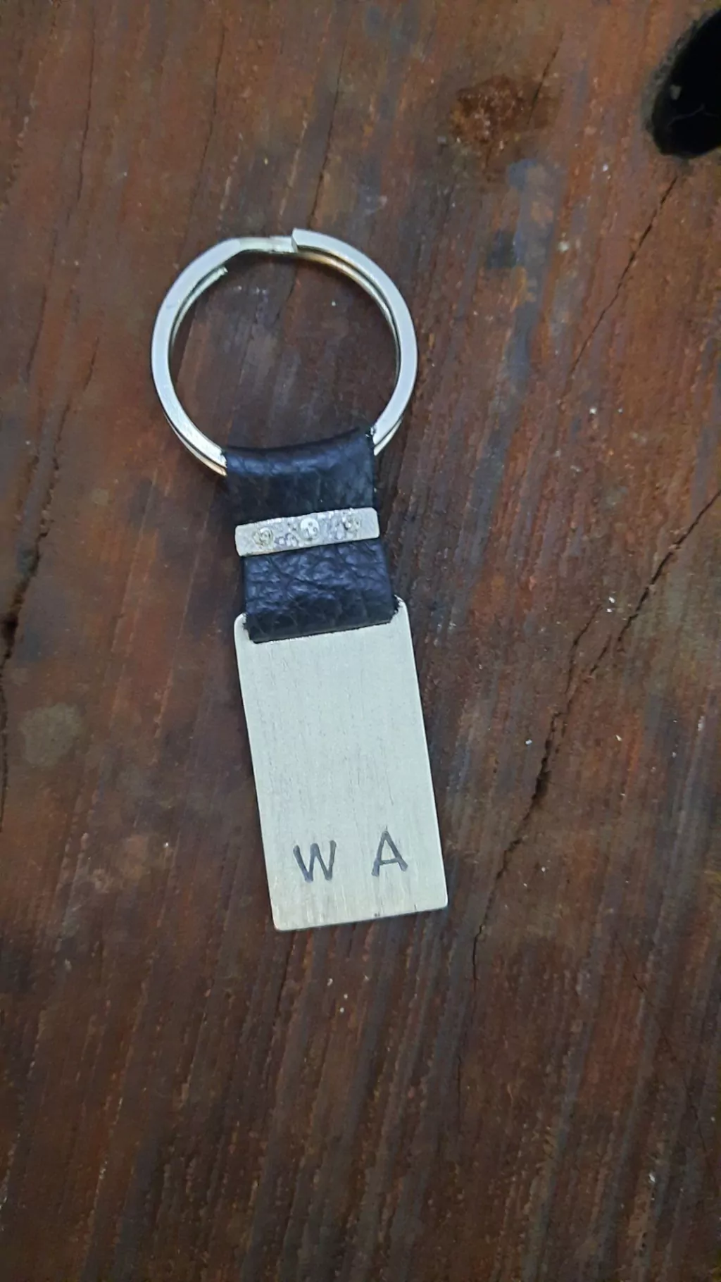 Llavero de plata y cuero con remaches de plata, reforzado.