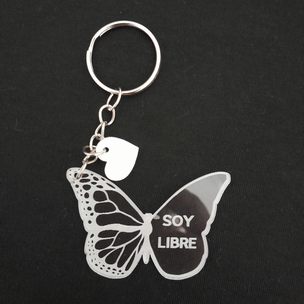 Llavero despierto Mariposa, con la inscripcion Soy Libre, mide 10cm de largo por 5,5cm de anchoLLeva estas palabras con vos, y recorda tu libertad!
