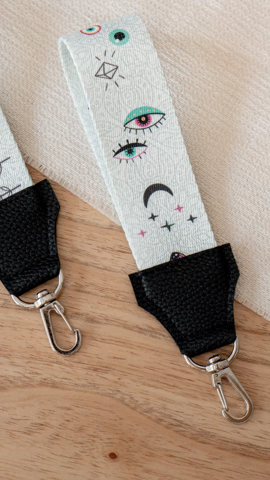 Strap para sobre o para usarlo como llavero.Cinta sublimada, mosqueton de metal color plateado y terminación de ecocuero.Diseño & confeccion propia