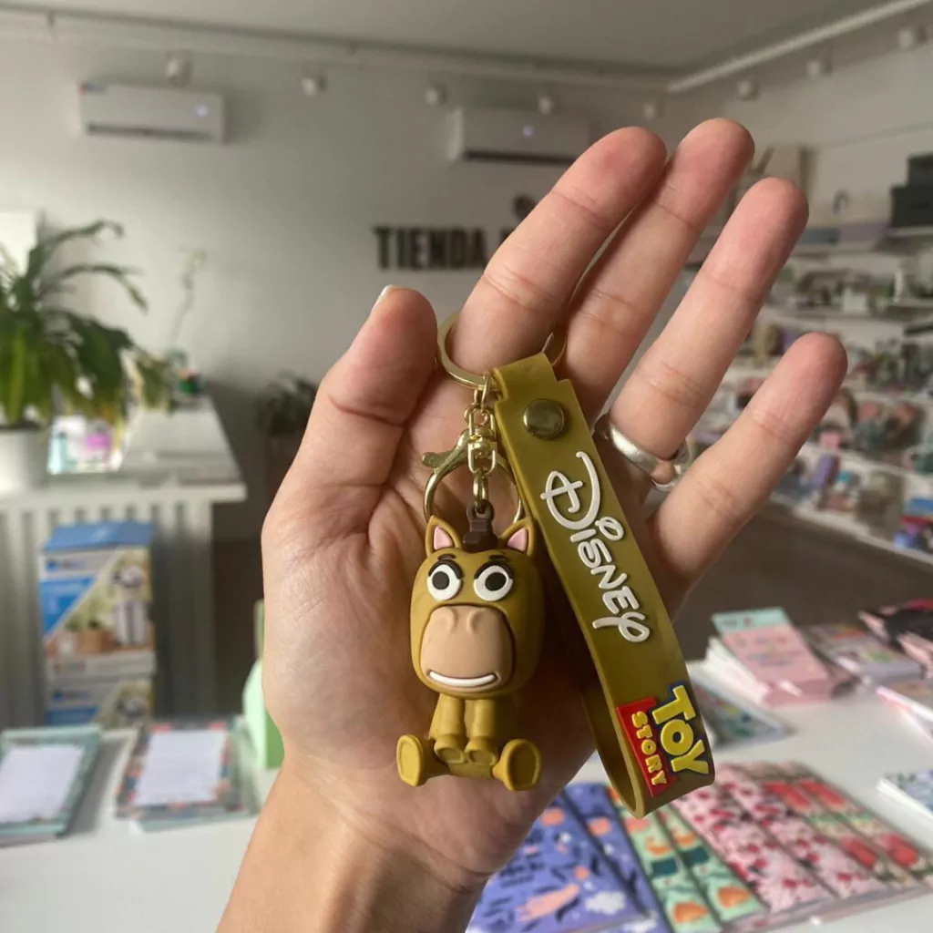 Llavero de silicona con diseño de personaje y correita de agarre extra.