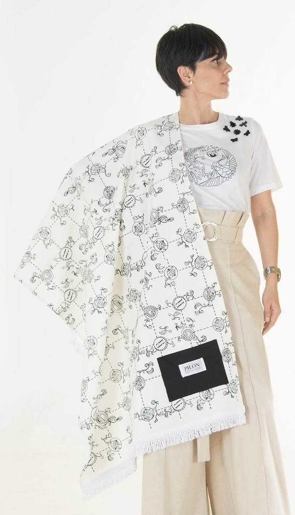 Lona playera, estampada artesanalmente con arte lineal, diseño exclusivo de estampa. Doble fleco de algodón. Género 100% algodón. Medidas, 0,85 x 1,60 mts de largo. Es perfecta como look de playa, con el Tote bag Orgón redondo. Toda la pieza fue realizada artesanalmente. Su estampa es un verdadero cuadro, una oda al amor y a la naturaleza.