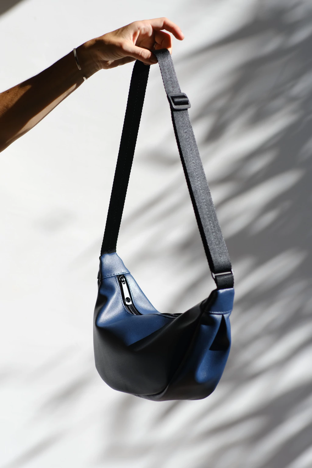 • La Luna Bag es LA Cartera que te Abraza. Para llevar todos tus esenciales (entra lo mismo que la Riñonera XL) sin ser Riñonera. Tiene 2 bolsillos internos y la correa es regulable.• Es 2 en 1, para usar:~ cruzada: para andar todo el día (tipo riñonera).~ en el hombro: para salir, como cartera.• Es liviana, cómoda y todo terreno.~Tamaño:34 cm (ancho) x 15 cm (alto) x 10 cm (profundidad).~Material:Cuero PU, es un material sintético que tiene el mismo aspecto y tacto que el cuero, pero no se utiliza piel de animal para realizarlo. Es un material Vegano, de muy fácil mantenimiento y cuidado.~Forrería:Gross de algodón rayado.• LIMPIEZA:Trapo húmedo.