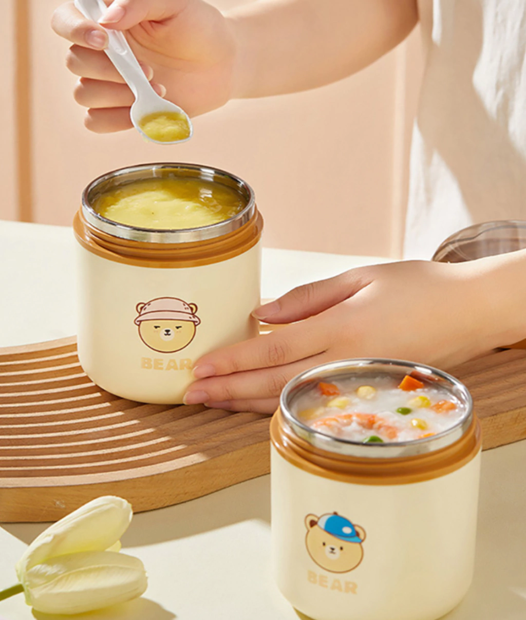 Lunchera de acero con tapa + cubierto.Ideal para trasladar todas las comidas que quieras con seguridad y que éstas se mantengan a la temperatura ideal.Capacidad: 530ml.Medidas: 9.5cm x 12.5 cm.Estampas variada según stock disponible.Las fotos son ilustrativas.