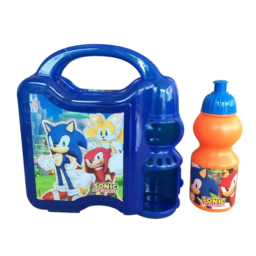 Lunchera Personajes de plástico tipo valija con botella de 350 ml incluida. ¡La botella se puede incluir en la lunchera para evitar que se pierda!La forma más cómoda de llevar todo lo que necesitas al cole o a la colonia, la lunchera tiene un espacio para colocar la comida y otro espacio para la botella.La botella tiene tapa a rosca y pico para tomar directamente de la botella.Modelos: Avengers, Frozen, River Plate, Sonic y Flores.Material: PVC.Medidas de la lunchera: 21 cm (ancho) x 24 cm (alto) x 7 cm (prof)Medidas de la botella: 6.5 cm (ancho) x 18 cm (alto)
