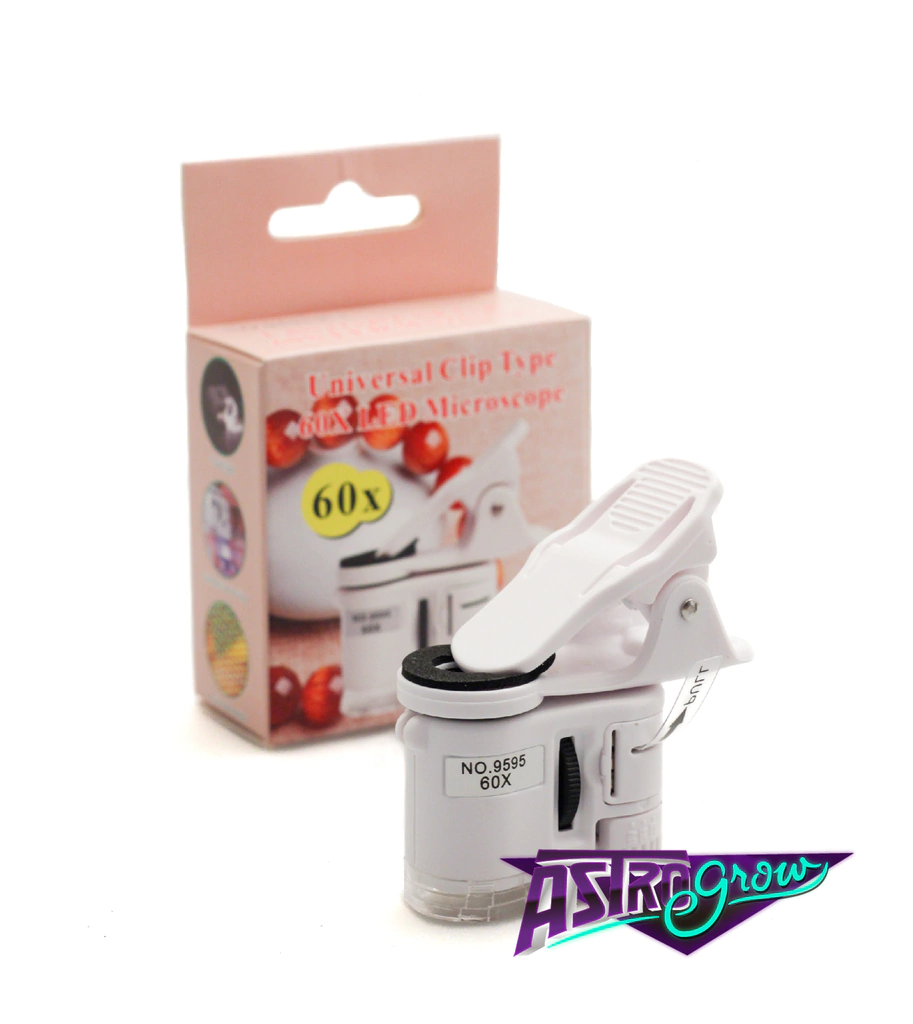 -Ideal para ver el estado de los Tricomas y obtener el punto óptimo de cosecha.- Su diseño es pequeño, compacto, ligero, fácil de llevar y cómodo de usar.- Cuenta con 2 luces LED blancas, puedes ver mucho más claro en condiciones oscuras.- También con una luz UV LED puede detectar la moneda verdadera o falsa.- Posee interruptor de encendido/apagado para controlar la luz encendido/apagado/color.- El enfoque del microscopio se puede ajustar girando la rueda y la bombilla puede identificar la luz del objeto.