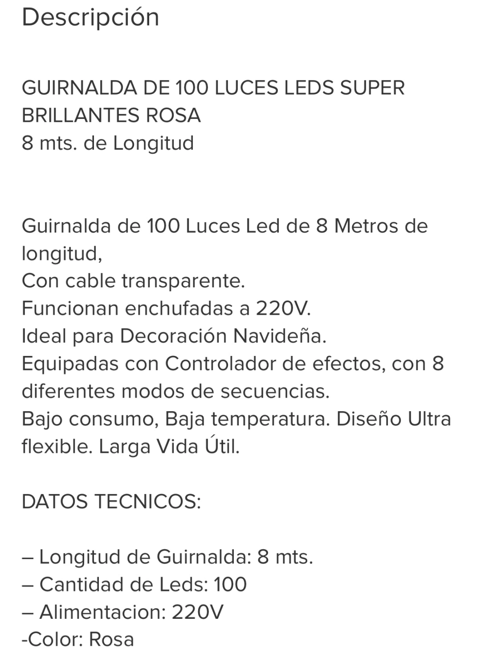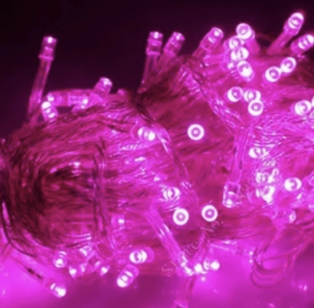 Tira de Luz 100 Led color Fucsia con enchufe y de 8 mts largo
