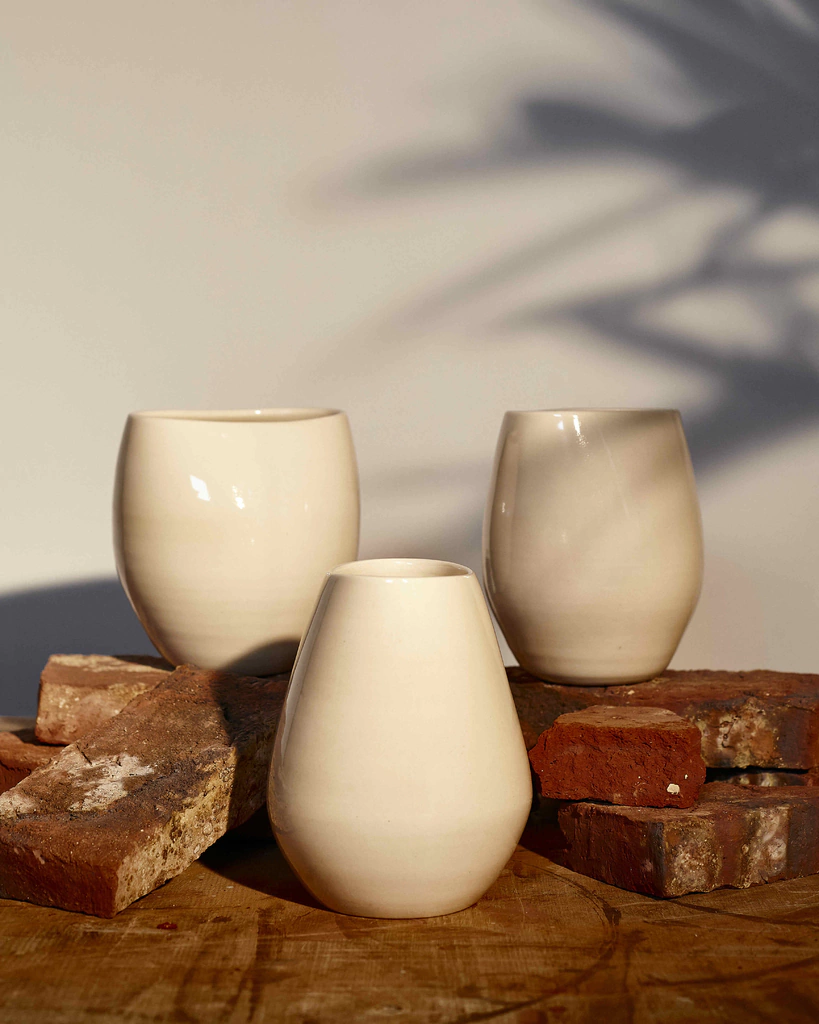 Maceta de cerámica realizada en torno alfarero, con esmalte cristal. Esta pieza de color neutro y formas redondeadas acompaña la belleza de tu planta y se destaca en cualquier ambiente.