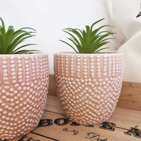 Maceta decorativa de cerámica con suculenta artificial. Medidas: 11cm alto