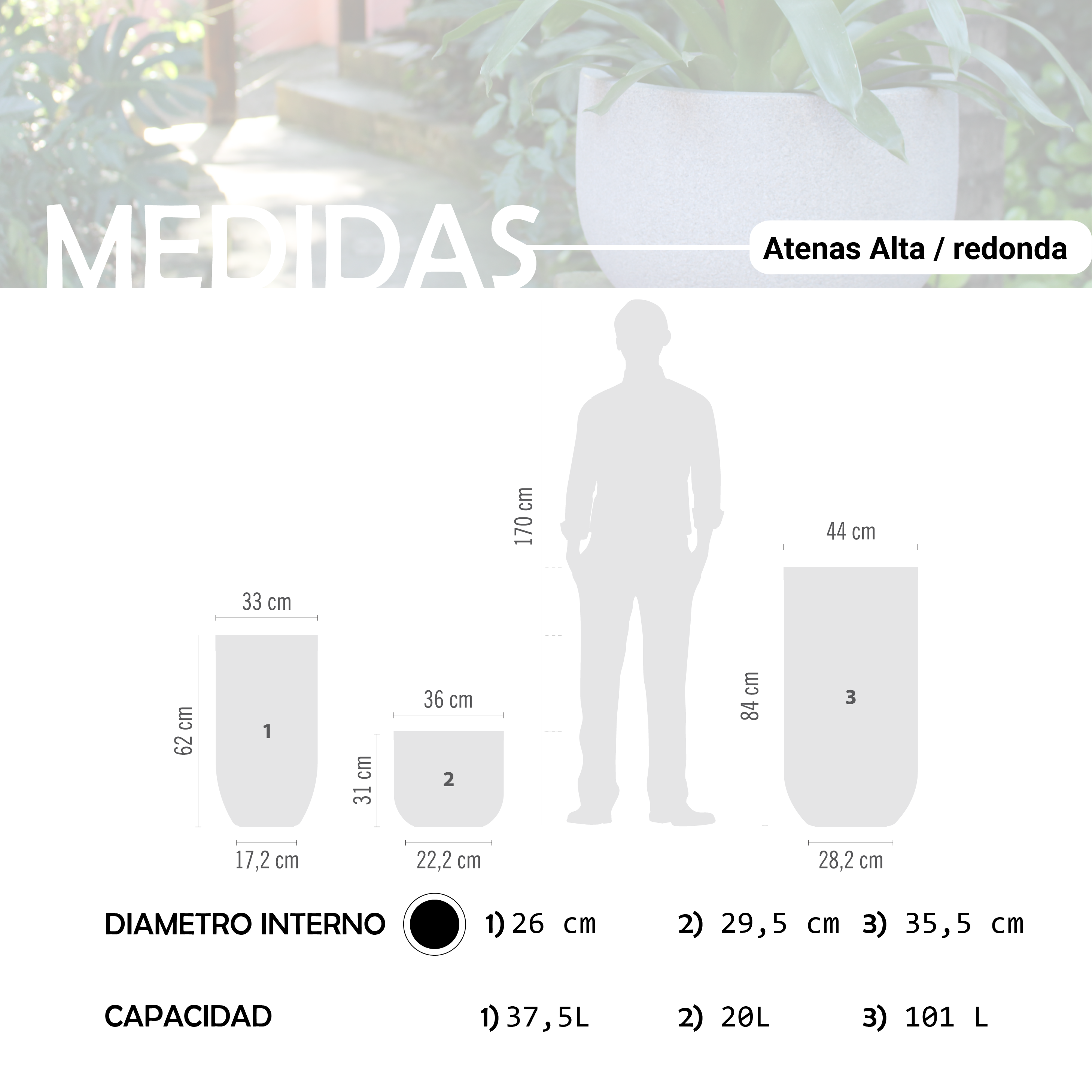 Maceta plástica rotomoldeada simil cemento-piedra, diseño clásico y minimalista que armoniza cualquier ambiente.