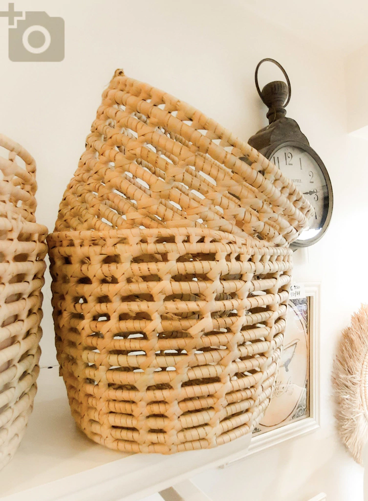 Canasto/Macetero hojas de palma Sol chico.Al ser un producto natural, hecho a mano, las medidas y diseño pueden variar24x21alto