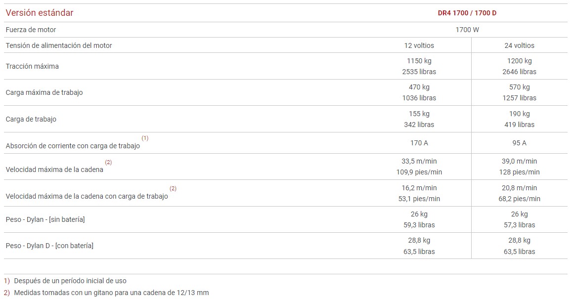 Malacate QUICK 1700w 24V DR4 Cadena 13mm