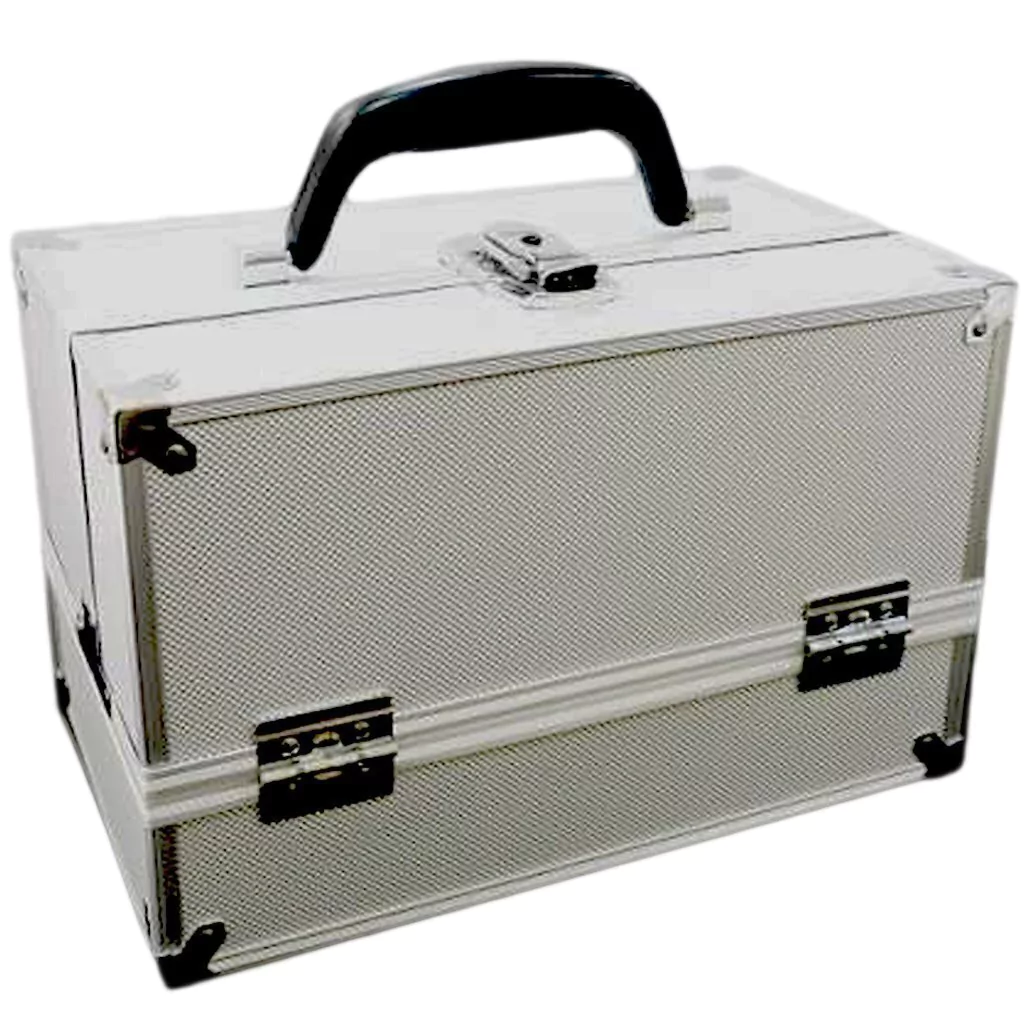 Maletín de maquillaje de aluminio con 4 bandejas.