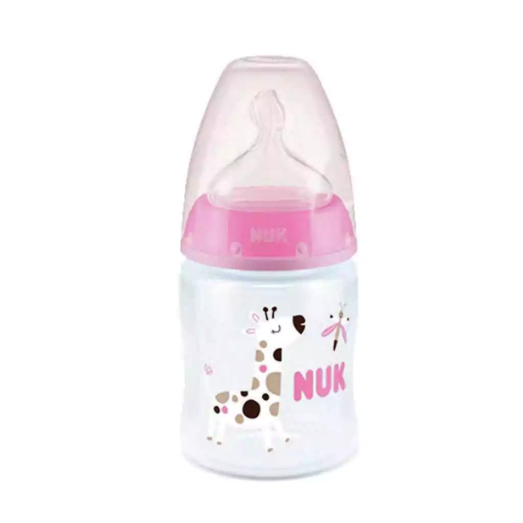 Detalle:- Con Indicador de Temperatura en la escala de medición. El color cambia con la temperatura del contenido. Si el alimento está demasiado caliente, el indicador pasa de color azul a blanco.- Tetina de silicona con formato Ortodóntico NUK mejorado, que se adapta perfectamente a la mandíbula del bebé.- Con sistema de ventilación NUK ANTI-COLIC AIR SYSTEM, que ayuda a prevenir los cólicos.- Cuello ancho que facilita el llenado y la limpieza.- Probado clínicamente*: para una combinación óptima de amamantamiento y mamadera-  150ml, con tetina de 0-6 meses, flujo M