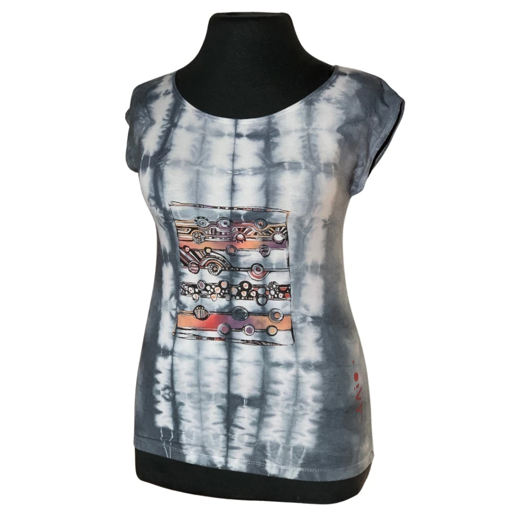 Remera de modal con lycra. Pintada a mano, y en los casos de batik también esta teñida a mano.