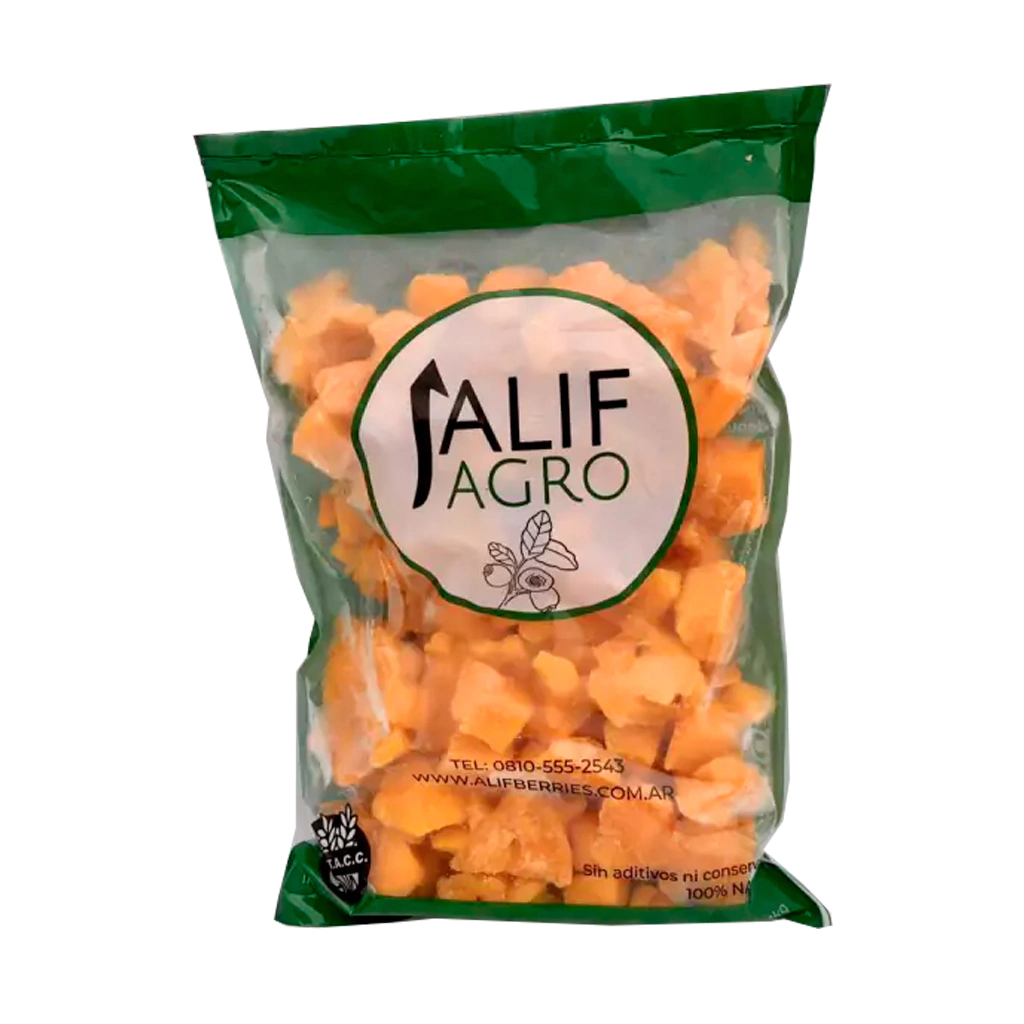 Mangos Congelados Alif Agro 1 KgNuestra fruta cumple con el estado de madurez perfecto, el cual refleja los atributos de calidad en cuanto al mantenimiento de los cultivos y el trato de la misma durante la cosecha y su posterior proceso. Toda nuestra producción se basa en los más altos niveles de calidad, permitiéndonos llegar al mercado a través de fruta fresca y fruta congelada. en la actualidad, contamos con una capacidad de almacenamiento de congelado de más de 1 millón de kg.Sin Tacc.Las imágenes son a modo ilustrativo y pueden variar según disponibilidad de stock.