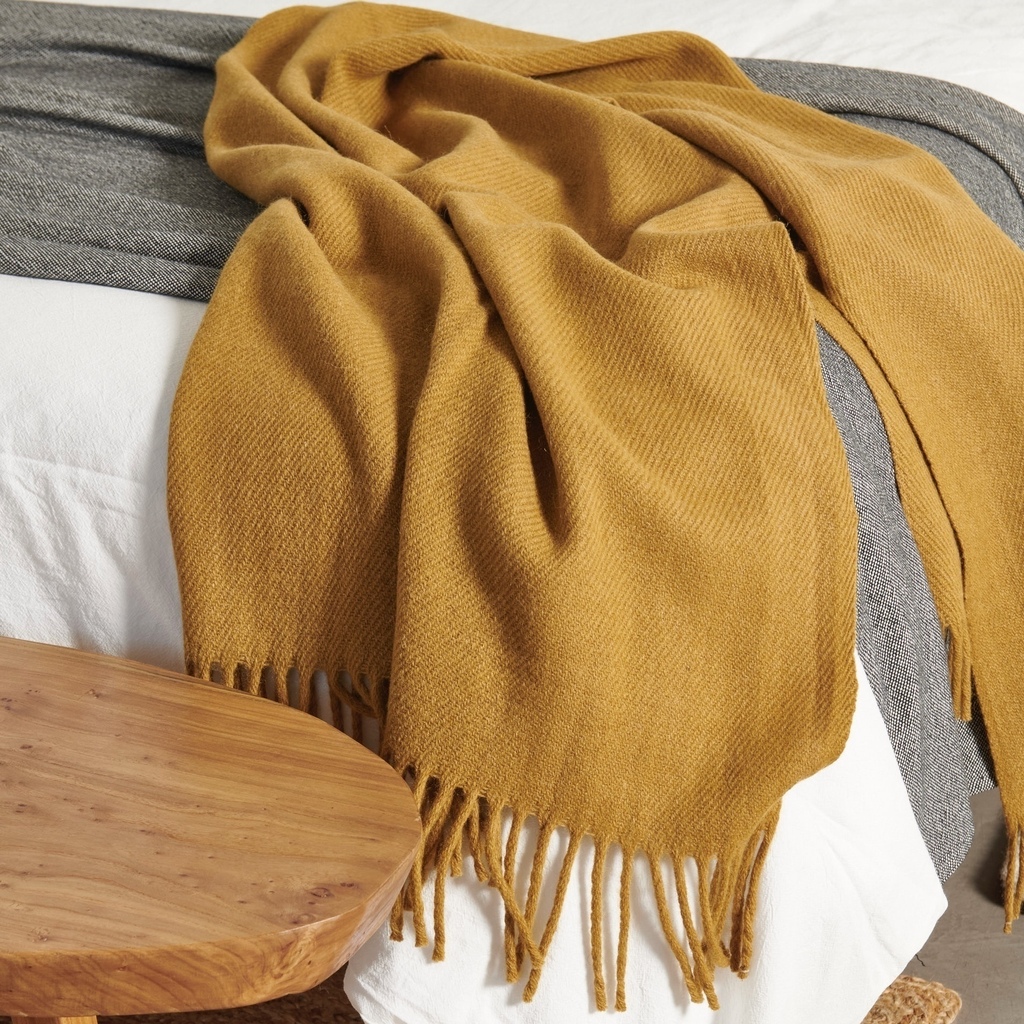Manta de lana de llama 30% y lana de oveja 70%.Ideal para pie de cama, decorar un canasto o emponcharte.Colores crudo, camel y gris oscuro.Medidas 80 de ancho x 2,20 de largo.Producto 100% artesanal.