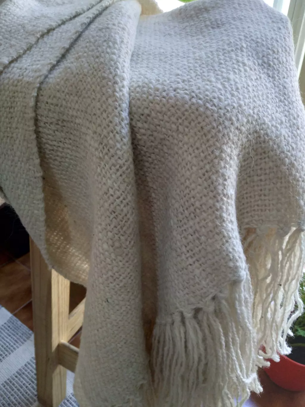 Manta en lana de llama rústica color crudo, ¡una pieza única que no puede faltar en tu hogar! Tejida a mano en telar artesanal, esta manta liviana de tramado abierto es perfecta para esos días frescos o simplemente para darle un toque especial a tu espacio. Sus medidas aproximadas son 1,80 mts de largo sin flecos y 67 cm de ancho, alcanzando 2,14 mts con flecos. Recuerda que cada manta es un producto artesanal, así que las medidas pueden variar. Para cuidar su esencia, no la laves en lavarropas ni centrifugues. Sumá este tesoro rústico a tu colección y disfrutá de la calidez de la lana de llama. ¡No te quedes sin la tuya!code # 214