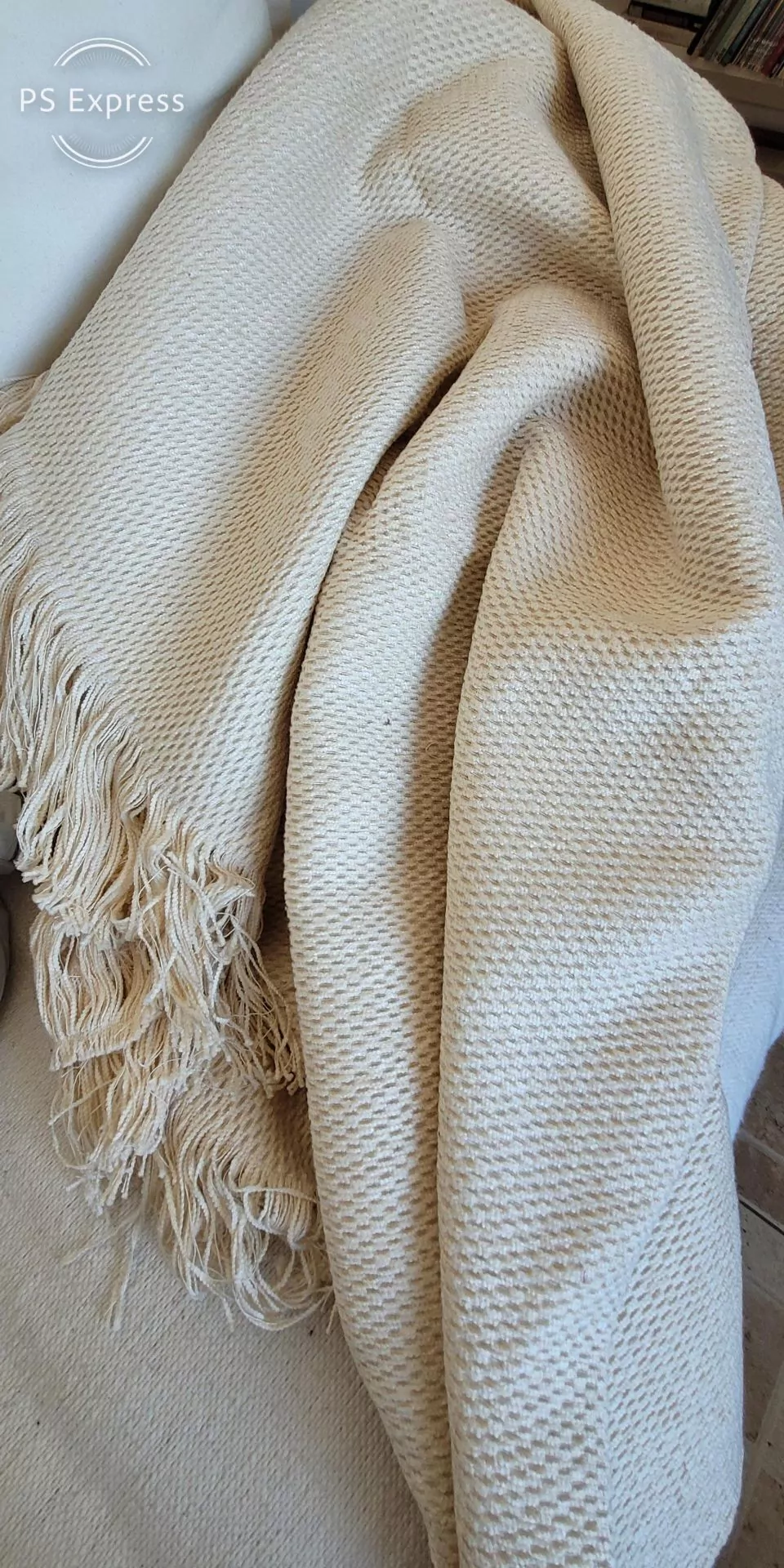 Manta Feli color crudo/natural. Hilado chenille. Limpieza en seco160x180cm aprox