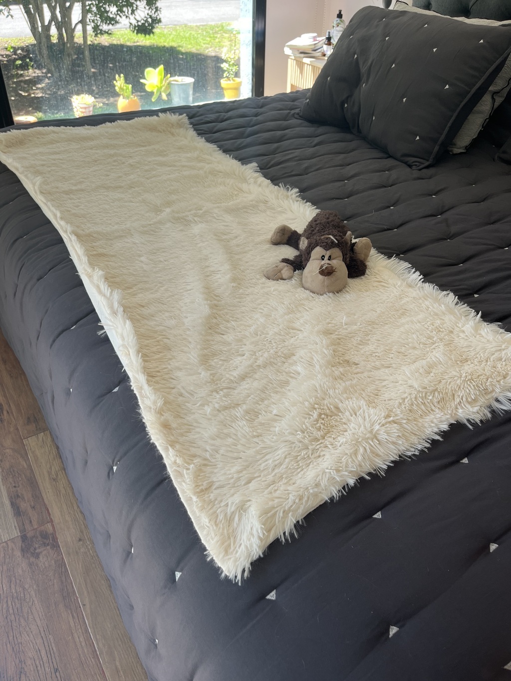 Manta Pie de Cama - Pelo de Mono y TussorDiseñamos esta manta para que las mascotas puedan acomodarse en el sillon o al pie de la cama y disfrutar de la compañia cómodos, calentitos y felices.Una solución genial para que todos disfruten a pleno el hogar.Tela: pelo de mono y tussor.Colores: variosMedidas:grande: 150x60cmCaracterísticas:Manta reversible de 2 telas diferentes.Apto lavarropas, de secado rápido y no se plancha.Nota: Al no ser productos industrializados las medidas pueden varias en algunos cm. Igualmente el color puede variar ligeramente debido a la iluminación con la que se tomó la foto y la saturación del monitor.
