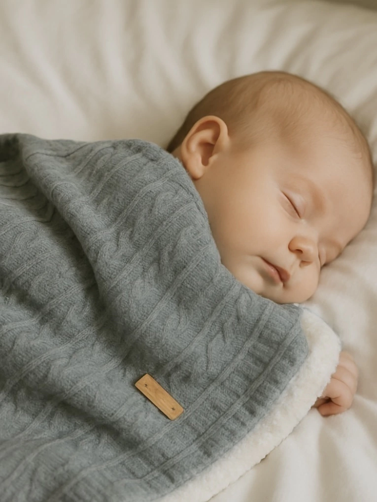 Mantita doble, tejida en lana acrílica hipoalergenica con interior de piel.