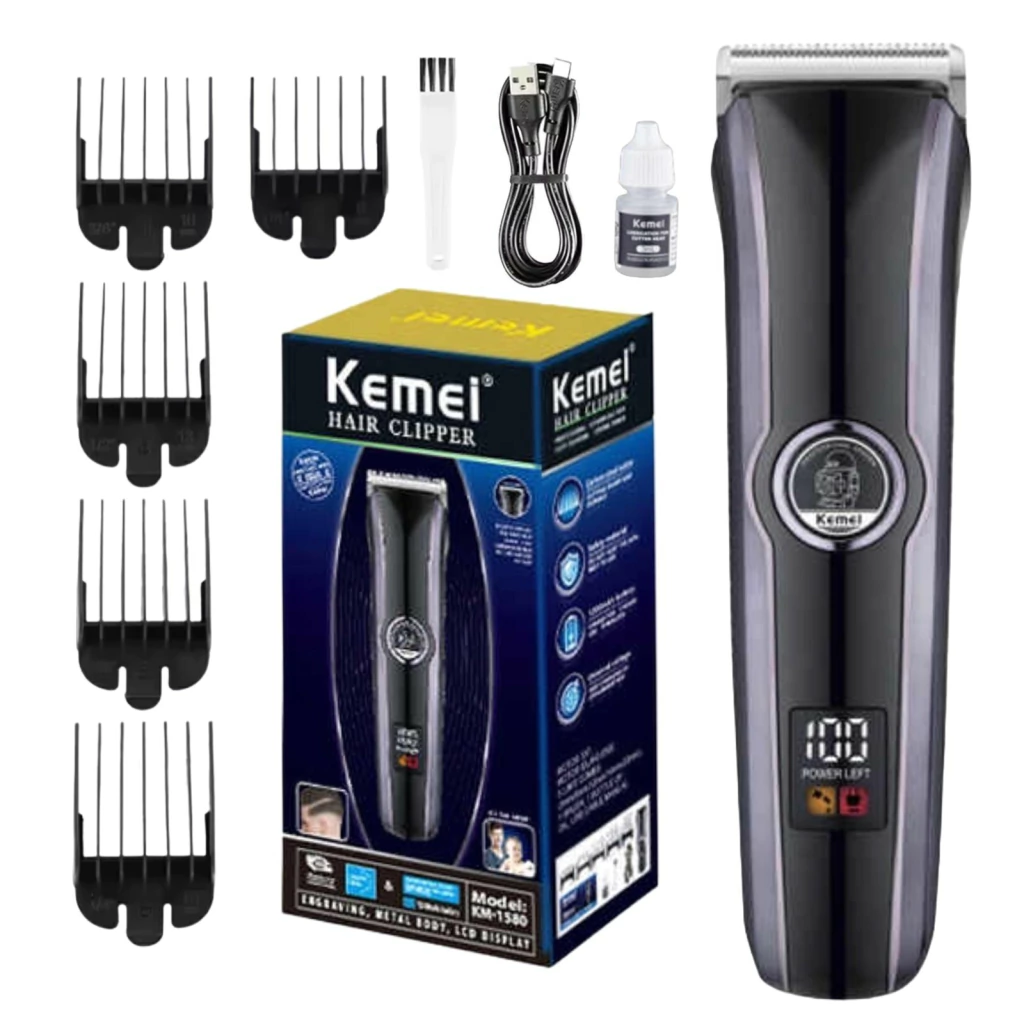 MAQUINA DE CORTAR PELO!Modelo Kemei KM - 1580UnisexAdultos y niñosFuerza 3wVoltaje 5vDuración de carga - 2 horas.INCLUYE .- Cable usb- Aceite- 5 peines removibles- Cepillito para limpiar la maquina