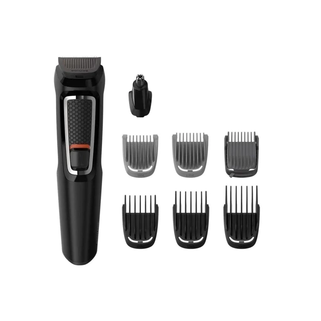 - Herramientas para modelar: Recortador, Recortador para nariz y orejas, Peine recortador ajustable para barba de 3 a 7 mm, 2 peines recortadores para barba incipiente, 3 peines recortadores para vello