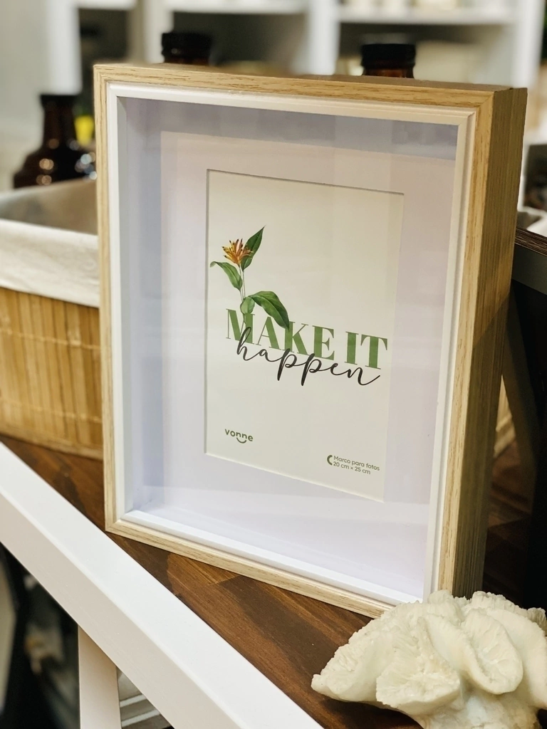 Marco para foto, 20x25 cm, línea Libertad. Con una profundidad de 4,5 cm, crea un diseño elegante con distancia entre el vidrio y la foto. Incluye pie de apoyo para superficies y ganchos para colgar en la pared. Perfecto para destacar tus recuerdos de manera decorativa y versátil.
