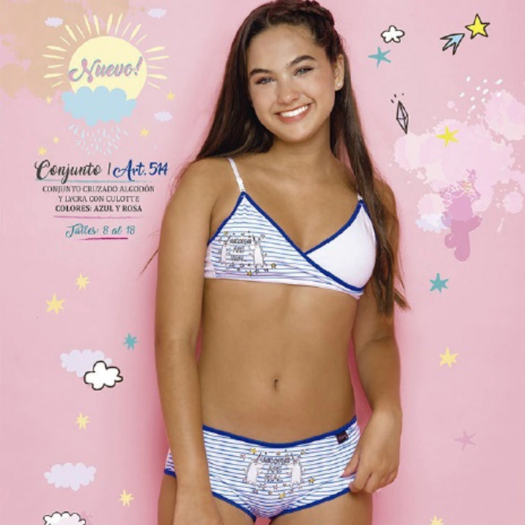 ARTICULO 514 MAREYCONJUNTO CRUZADO DE ALGODON Y LYCRA CON CULOTTECOLORES: AZUL/ ROSATALLES: 8/10/12/14/16/18