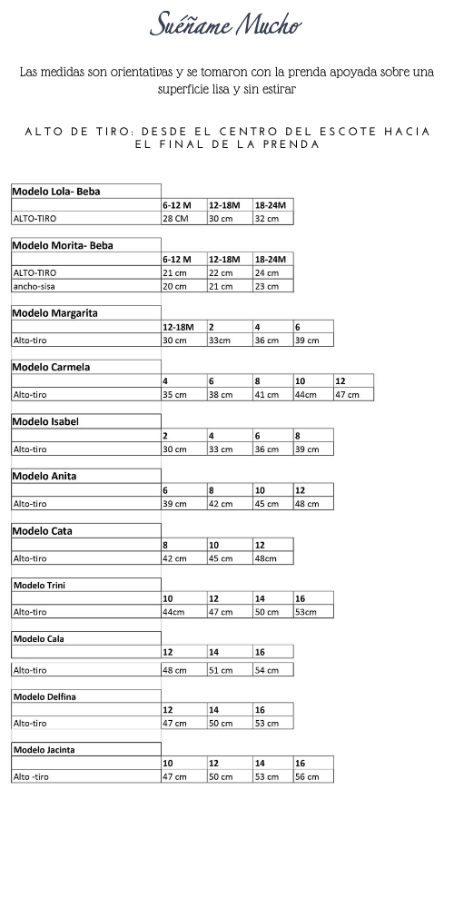 Para este modelo recomendamos llevar, por ejemplo, para una beba de 6 meses talle 12-18 meses y para un año talle 2.