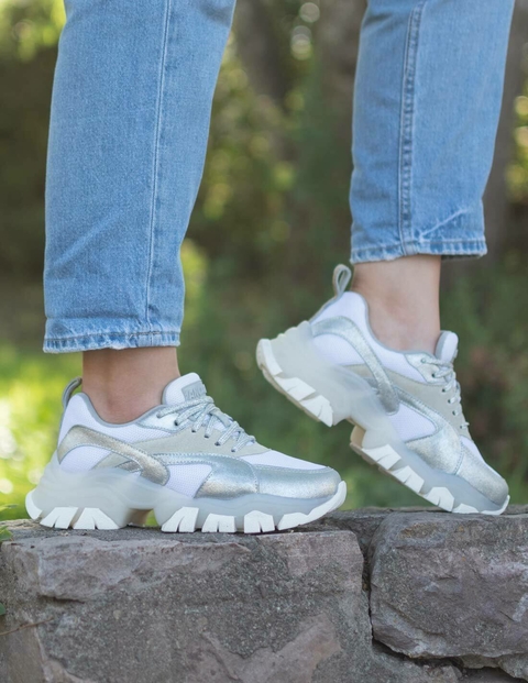 Zapatilla de cuero vegan acordonada estilo "Ugly Sneakers"Horma estandar.Colores disponibles:Nude,Blanco,Nude,VerdeZapatilla confeccionada en cuero vegan y material textil color blanco.Detalles de cortes en color plata y color gris.Ajuste con cordones.Forro interno a tono.Base ultraliviana antideslizante gris con detalles color blanco.Plataforma 2.5 cm. Taco 4 cm.NO TE OLVIDES QUE PODES CONSULTAR NUESTRATABLA DE TALLES10% DE DESCUENTO CON TRASFERENCIA BANCARIA