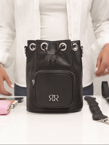 Marinero Camile es un diseño exclusivo Rosé Concept. El acceso principal es mediante cordón de cuero ajustable por medio de ojales. Posee un bolsillo externo con cierre metálico de 13x11 cm. Posee aplique metálico con logo de la marca en el frente.