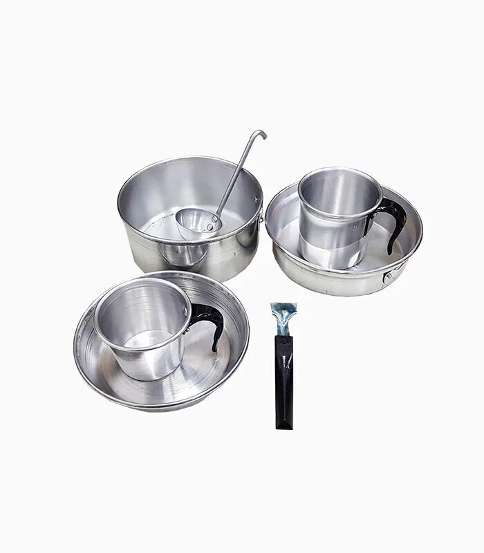 Material: aluminio.Ideal para cocinar en tus viajes de camping, mochilero, o pesca.Incluye 8 piezas:1 Sartén de 16 cm.1 Cacerola de 16 cm.1 Mango.1 Plato mochilero.1 Jarro n°8.1 Jarro n°9.Bolso de transporte.