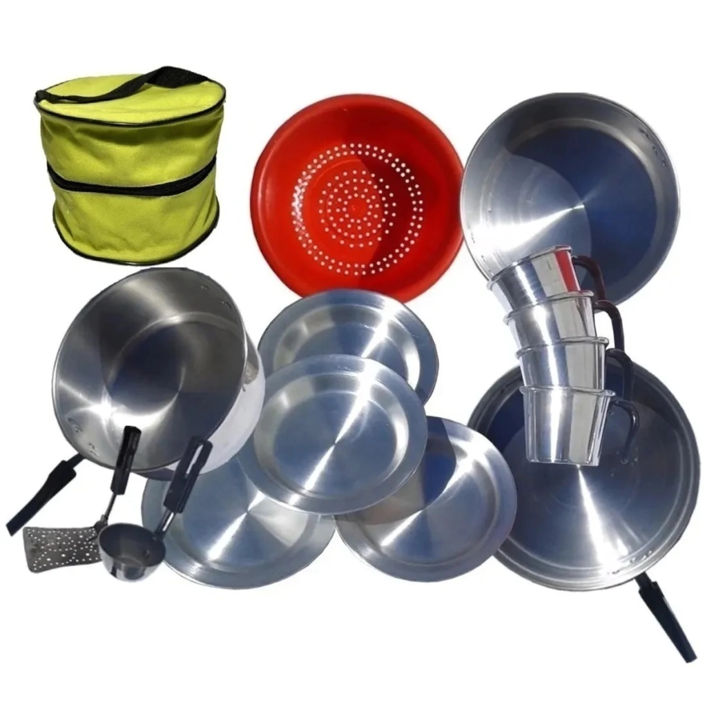 - Marmita mochilera para 4 persona, con bolsito. 17 piezas.