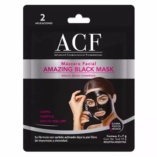 Detoxifica tu piel y la deja radiante en 30 minutos El carbon activado actua profundamente logrando la eliminacion absoluta de impurezas y puntos negros. Limpia y purifica dejando una piel suave y luminosa despues del uso. Se puede aplicar con pincel o con los dedos, buscando dejar una pelicula uniforme sobre el area deseada. Tips: Efecto Detox Inmediato. Ingredientes Activos: Agua, carbon activado y gelificante. Contenido: 1 sobre con 2 aplicaciones. Formula INCI: Water (aqua), polyvinyl alcohol, alcohol, glycerin, propylene glycol, phenoxyethanol amp; ethylhexylglycerin, charcoal powder, CI 77499 (iron oxides), sodium polyacrylate, fragrance (allergens: benzyl salicylate),kaolin, camellia sinensis extract, citrus grandis (grapefruit) fruit extract, zingiber officinale (ginger) extract.