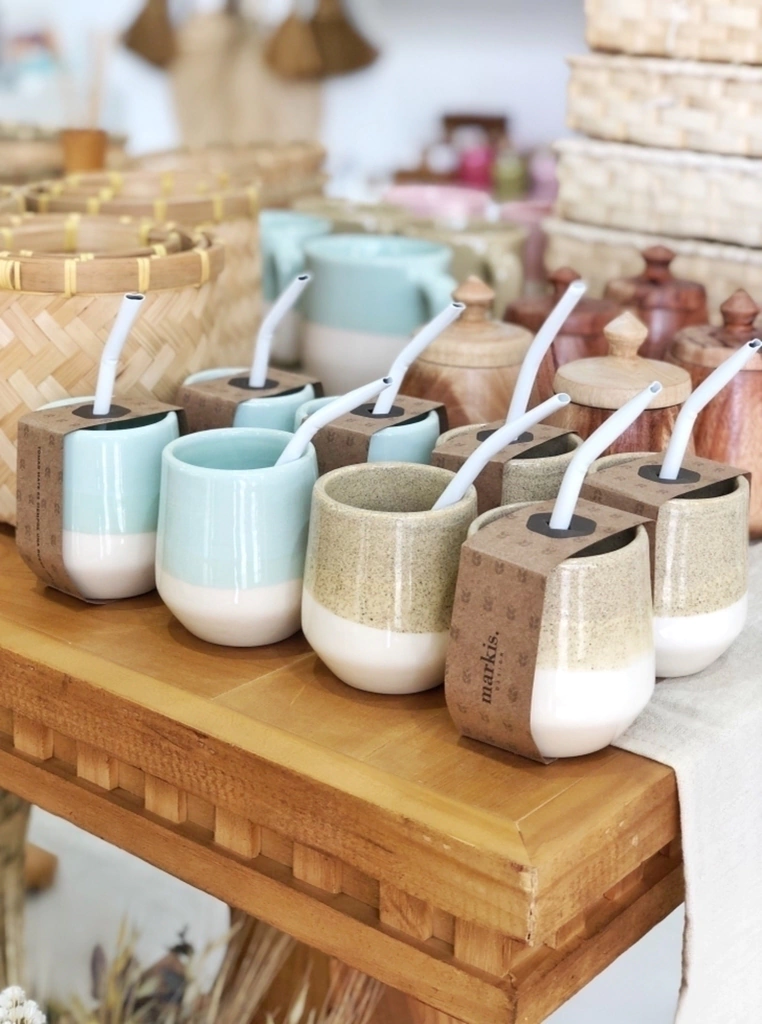 Mate de ceramica con bombilla incluida.Medida: 9 cm de alto x 8 cm de diámetro.